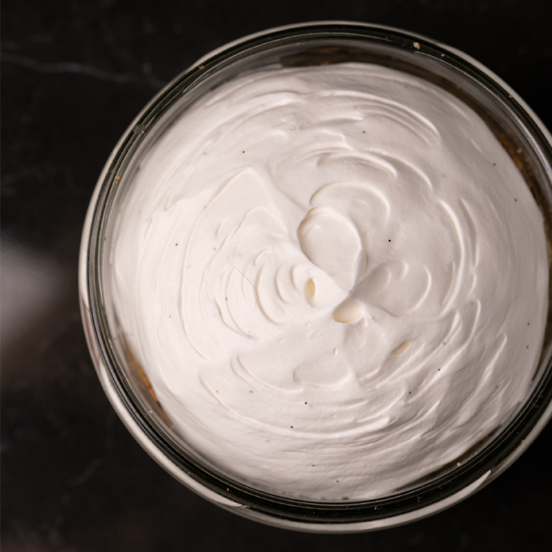 L'association de la pomme, la noix et la vanille, réhaussée d'un crumble et d'une crème chantilly...